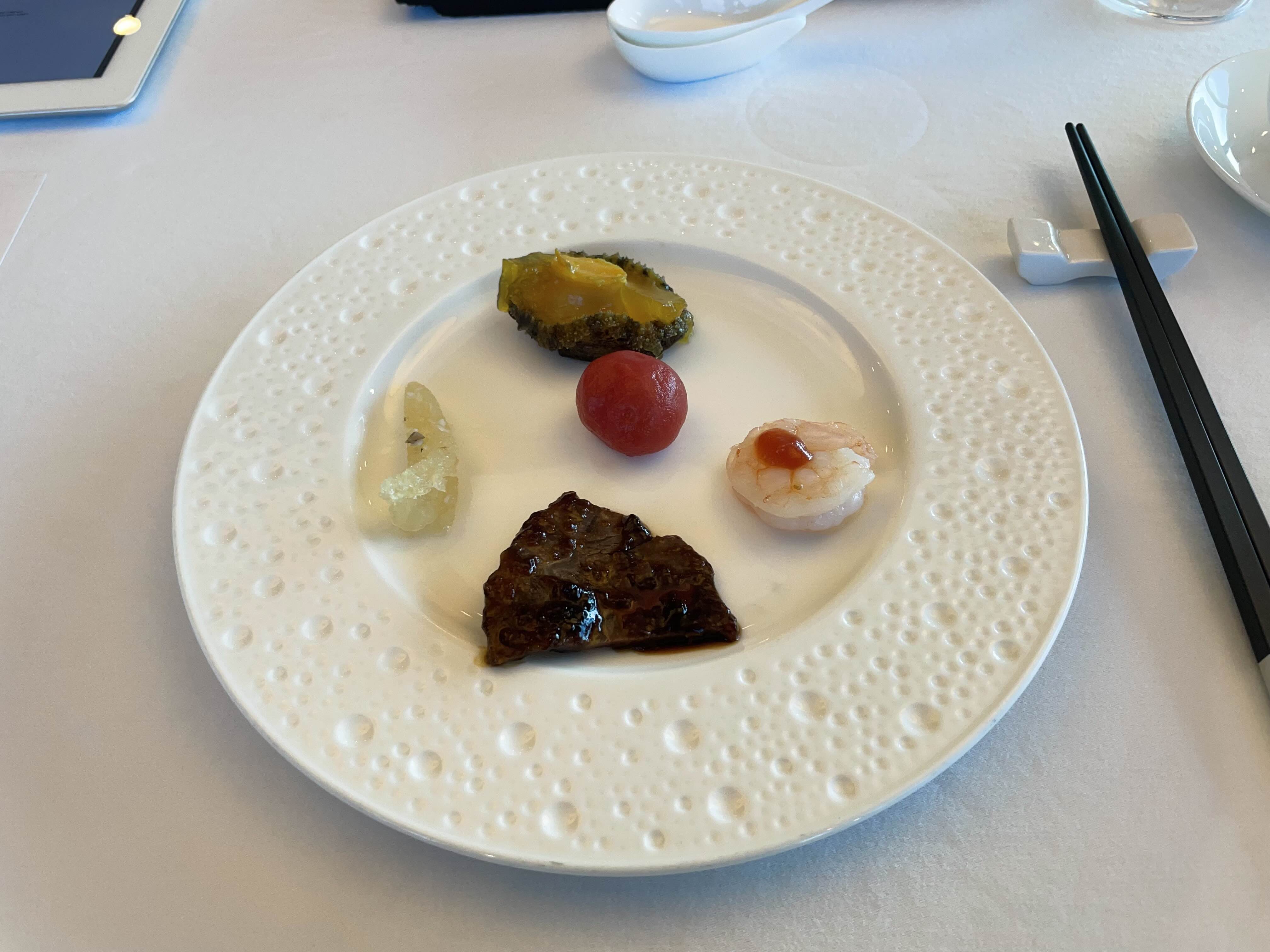 한우, 전복, 새우, 방울토마토, 하나는.. 기억이 잘 나지 않는데 해초같은 꼬득꼬득한 식감